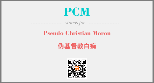 以上为Pseudo Christian Moron英文缩略词PCM的中文解释,以及该英文缩写在英语的流行度、分类和应用领域方面的信息。