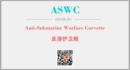 英文缩略词“ASWC”经常作为“Anti-Submarine Warfare Corvette”的英文缩写来使用,中文表示:“反潜护卫舰”。本文将详细介绍英文缩写词ASWC所代表英文单词,其对应的中文拼音、详细解释以及在英语中的流行度。此外,还有关于缩略词ASWC的分类、应用领域及相关应用示例等。
