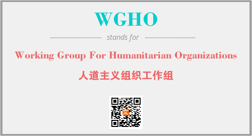 上述内容是“Working Group For Humanitarian Organizations”作为“WGHO”的缩写,解释为“人道主义组织工作组”时的信息,以及英文缩略词WGHO所代表的英文单词,其对应的中文拼音、详细解释以及在英文中的流行度和相关分类、应用领域及应用示例等。