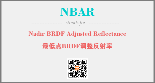 上述内容是“Nadir BRDF Adjusted Reflectance”作为“NBAR”的缩写,解释为“最低点BRDF调整反射率”时的信息,以及英文缩略词NBAR所代表的英文单词,其对应的中文拼音、详细解释以及在英文中的流行度和相关分类、应用领域及应用示例等。