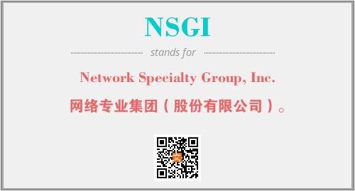 上述内容是“Network Specialty Group, Inc.”作为“NSGI”的缩写,解释为“网络专业集团(股份有限公司)。”时的信息,以及英文缩略词NSGI所代表的英文单词,其对应的中文拼音、详细解释以及在英文中的流行度和相关分类、应用领域及应用示例等。