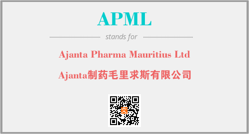 上述内容是“Ajanta Pharma Mauritius Ltd”作为“APML”的缩写,解释为“Ajanta制药毛里求斯有限公司”时的信息,以及英文缩略词APML所代表的英文单词,其对应的中文拼音、详细解释以及在英文中的流行度和相关分类、应用领域及应用示例等。