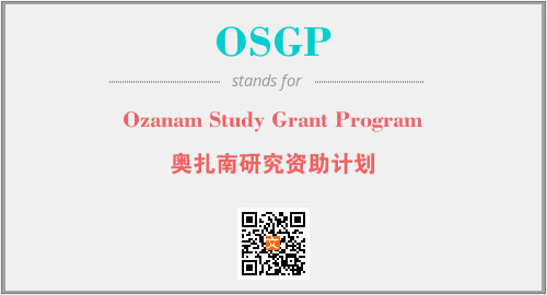 上述内容是“Ozanam Study Grant Program”作为“OSGP”的缩写,解释为“奥扎南研究资助计划”时的信息,以及英文缩略词OSGP所代表的英文单词,其对应的中文拼音、详细解释以及在英文中的流行度和相关分类、应用领域及应用示例等。