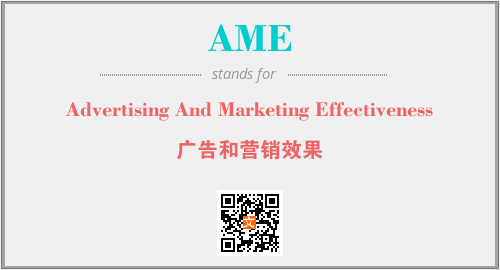 上述内容是“Advertising And Marketing Effectiveness”作为“AME”的缩写,解释为“广告和营销效果”时的信息,以及英文缩略词AME所代表的英文单词,其对应的中文拼音、详细解释以及在英文中的流行度和相关分类、应用领域及应用示例等。