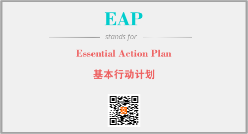 英文缩略词“EAP”经常作为“Essential Action Plan”的英文缩写来使用,中文表示:“基本行动计划”。本文将详细介绍英文缩写词EAP所代表英文单词,其对应的中文拼音、详细解释以及在英语中的流行度。此外,还有关于缩略词EAP的分类、应用领域及相关应用示例等。