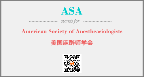 上述内容是“American Society of Anestheasiologists”作为“ASA”的缩写,解释为“美国麻醉师学会”时的信息,以及英文缩略词ASA所代表的英文单词,其对应的中文拼音、详细解释以及在英文中的流行度和相关分类、应用领域及应用示例等。