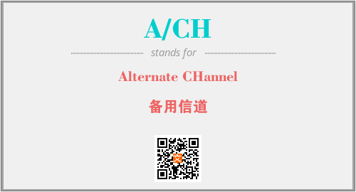 英文缩略词“A/CH”经常作为“Alternate CHannel”的英文缩写来使用,中文表示:“备用信道”。本文将详细介绍英文缩写词A/CH所代表英文单词,其对应的中文拼音、详细解释以及在英语中的流行度。此外,还有关于缩略词A/CH的分类、应用领域及相关应用示例等。