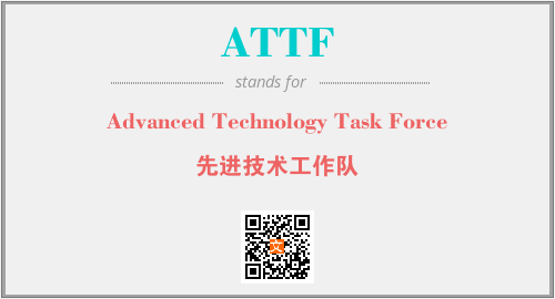 英文缩略词“ATTF”经常作为“Advanced Technology Task Force”的英文缩写来使用,中文表示:“先进技术工作队”。本文将详细介绍英文缩写词ATTF所代表英文单词,其对应的中文拼音、详细解释以及在英语中的流行度。此外,还有关于缩略词ATTF的分类、应用领域及相关应用示例等。