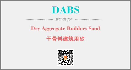 英文缩略词“DABS”经常作为“Dry Aggregate Builders Sand”的英文缩写来使用,中文表示:“干骨料建筑用砂”。本文将详细介绍英文缩写词DABS所代表英文单词,其对应的中文拼音、详细解释以及在英语中的流行度。此外,还有关于缩略词DABS的分类、应用领域及相关应用示例等。