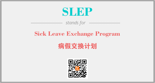 以上为Sick Leave Exchange Program英文缩略词SLEP的中文解释,以及该英文缩写在英语的流行度、分类和应用领域方面的信息。