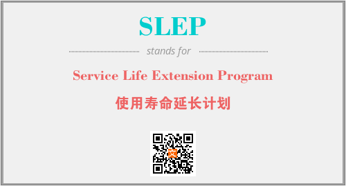 英文缩略词“SLEP”经常作为“Service Life Extension Program”的英文缩写来使用,中文表示:“使用寿命延长计划”。本文将详细介绍英文缩写词SLEP所代表英文单词,其对应的中文拼音、详细解释以及在英语中的流行度。此外,还有关于缩略词SLEP的分类、应用领域及相关应用示例等。
