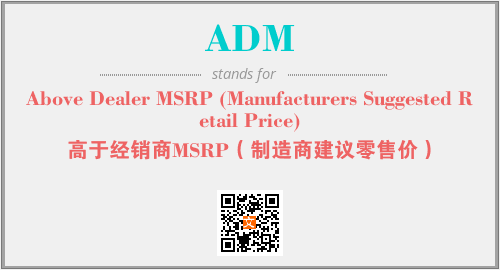 上述内容是“Above Dealer MSRP (Manufacturers Suggested Retail Price)”作为“ADM”的缩写,解释为“高于经销商MSRP(制造商建议零售价)”时的信息,以及英文缩略词ADM所代表的英文单词,其对应的中文拼音、详细解释以及在英文中的流行度和相关分类、应用领域及应用示例等。