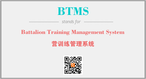 英文缩略词“BTMS”经常作为“Battalion Training Management System”的英文缩写来使用,中文表示:“营训练管理系统”。本文将详细介绍英文缩写词BTMS所代表英文单词,其对应的中文拼音、详细解释以及在英语中的流行度。此外,还有关于缩略词BTMS的分类、应用领域及相关应用示例等。