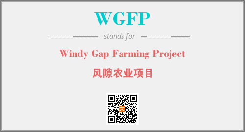 上述内容是“Windy Gap Farming Project”作为“WGFP”的缩写,解释为“风隙农业项目”时的信息,以及英文缩略词WGFP所代表的英文单词,其对应的中文拼音、详细解释以及在英文中的流行度和相关分类、应用领域及应用示例等。
