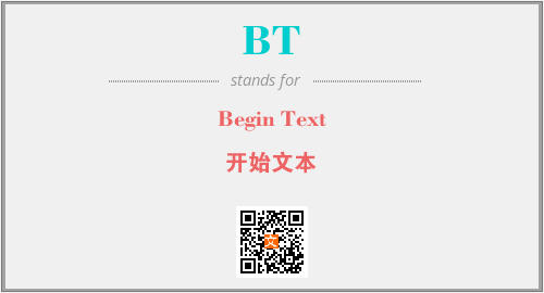上述内容是“Begin Text”作为“BT”的缩写,解释为“开始文本”时的信息,以及英文缩略词BT所代表的英文单词,其对应的中文拼音、详细解释以及在英文中的流行度和相关分类、应用领域及应用示例等。
