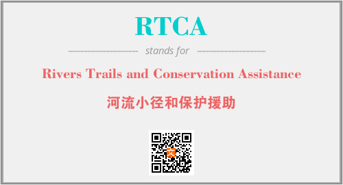 上述内容是“Rivers Trails and Conservation Assistance”作为“RTCA”的缩写,解释为“河流小径和保护援助”时的信息,以及英文缩略词RTCA所代表的英文单词,其对应的中文拼音、详细解释以及在英文中的流行度和相关分类、应用领域及应用示例等。