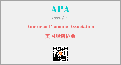 上述内容是“American Planning Association”作为“APA”的缩写,解释为“美国规划协会”时的信息,以及英文缩略词APA所代表的英文单词,其对应的中文拼音、详细解释以及在英文中的流行度和相关分类、应用领域及应用示例等。