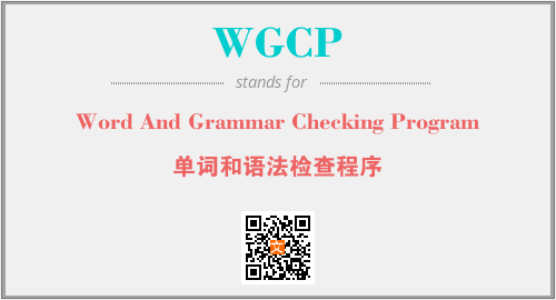 英文缩略词“WGCP”经常作为“Word And Grammar Checking Program”的英文缩写来使用,中文表示:“单词和语法检查程序”。本文将详细介绍英文缩写词WGCP所代表英文单词,其对应的中文拼音、详细解释以及在英语中的流行度。此外,还有关于缩略词WGCP的分类、应用领域及相关应用示例等。