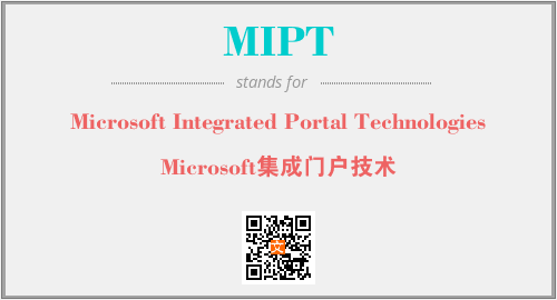 上述内容是“Microsoft Integrated Portal Technologies”作为“MIPT”的缩写,解释为“Microsoft集成门户技术”时的信息,以及英文缩略词MIPT所代表的英文单词,其对应的中文拼音、详细解释以及在英文中的流行度和相关分类、应用领域及应用示例等。