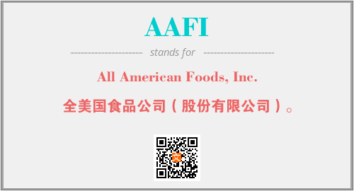 上述内容是“All American Foods, Inc.”作为“AAFI”的缩写,解释为“全美国食品公司(股份有限公司)。”时的信息,以及英文缩略词AAFI所代表的英文单词,其对应的中文拼音、详细解释以及在英文中的流行度和相关分类、应用领域及应用示例等。