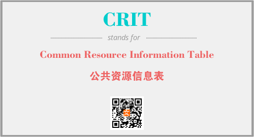 上述内容是“Common Resource Information Table”作为“CRIT”的缩写,解释为“公共资源信息表”时的信息,以及英文缩略词CRIT所代表的英文单词,其对应的中文拼音、详细解释以及在英文中的流行度和相关分类、应用领域及应用示例等。