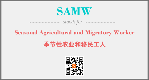 以上为Seasonal Agricultural and Migratory Worker英文缩略词SAMW的中文解释,以及该英文缩写在英语的流行度、分类和应用领域方面的信息。