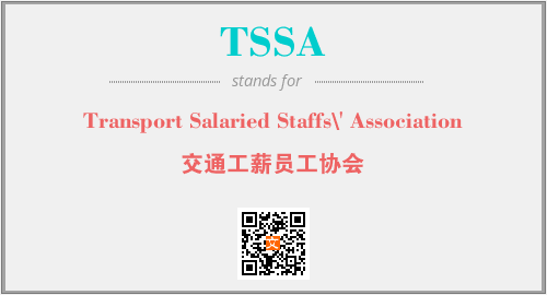 上述内容是“Transport Salaried Staffs\' Association”作为“TSSA”的缩写,解释为“交通工薪员工协会”时的信息,以及英文缩略词TSSA所代表的英文单词,其对应的中文拼音、详细解释以及在英文中的流行度和相关分类、应用领域及应用示例等。
