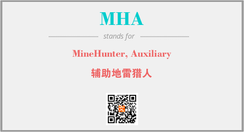 英文缩略词“MHA”经常作为“MineHunter, Auxiliary”的英文缩写来使用,中文表示:“辅助地雷猎人”。本文将详细介绍英文缩写词MHA所代表英文单词,其对应的中文拼音、详细解释以及在英语中的流行度。此外,还有关于缩略词MHA的分类、应用领域及相关应用示例等。
