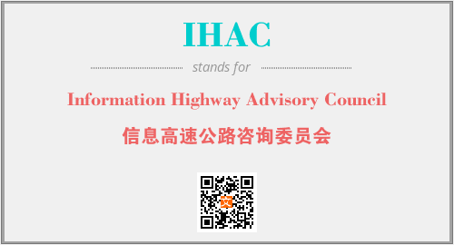 英文缩略词“IHAC”经常作为“Information Highway Advisory Council”的英文缩写来使用,中文表示:“信息高速公路咨询委员会”。本文将详细介绍英文缩写词IHAC所代表英文单词,其对应的中文拼音、详细解释以及在英语中的流行度。此外,还有关于缩略词IHAC的分类、应用领域及相关应用示例等。