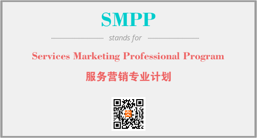 英文缩略词“SMPP”经常作为“Services Marketing Professional Program”的英文缩写来使用,中文表示:“服务营销专业计划”。本文将详细介绍英文缩写词SMPP所代表英文单词,其对应的中文拼音、详细解释以及在英语中的流行度。此外,还有关于缩略词SMPP的分类、应用领域及相关应用示例等。