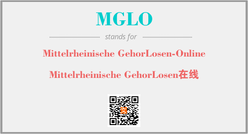 上述内容是“Mittelrheinische GehorLosen-Online”作为“MGLO”的缩写,解释为“Mittelrheinische GehorLosen在线”时的信息,以及英文缩略词MGLO所代表的英文单词,其对应的中文拼音、详细解释以及在英文中的流行度和相关分类、应用领域及应用示例等。