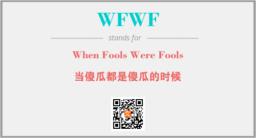 上述内容是“When Fools Were Fools”作为“WFWF”的缩写,解释为“当傻瓜都是傻瓜的时候”时的信息,以及英文缩略词WFWF所代表的英文单词,其对应的中文拼音、详细解释以及在英文中的流行度和相关分类、应用领域及应用示例等。