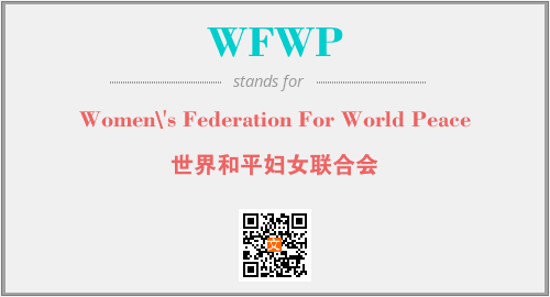 上述内容是“Women\'s Federation For World Peace”作为“WFWP”的缩写,解释为“世界和平妇女联合会”时的信息,以及英文缩略词WFWP所代表的英文单词,其对应的中文拼音、详细解释以及在英文中的流行度和相关分类、应用领域及应用示例等。
