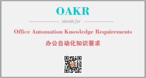 上述内容是“Office Automation Knowledge Requirements”作为“OAKR”的缩写,解释为“办公自动化知识要求”时的信息,以及英文缩略词OAKR所代表的英文单词,其对应的中文拼音、详细解释以及在英文中的流行度和相关分类、应用领域及应用示例等。