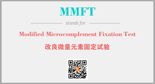 以上为Modified Microcomplement Fixation Test英文缩略词MMFT的中文解释,以及该英文缩写在英语的流行度、分类和应用领域方面的信息。