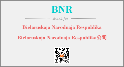 上述内容是“Bielaruskaja Narodnaja Respublika”作为“BNR”的缩写,解释为“Bielaruskaja Narodnaja Respublika公司”时的信息,以及英文缩略词BNR所代表的英文单词,其对应的中文拼音、详细解释以及在英文中的流行度和相关分类、应用领域及应用示例等。