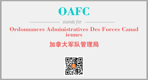 上述内容是“Ordonnances Administratives Des Forces Canadiennes”作为“OAFC”的缩写,解释为“加拿大军队管理局”时的信息,以及英文缩略词OAFC所代表的英文单词,其对应的中文拼音、详细解释以及在英文中的流行度和相关分类、应用领域及应用示例等。