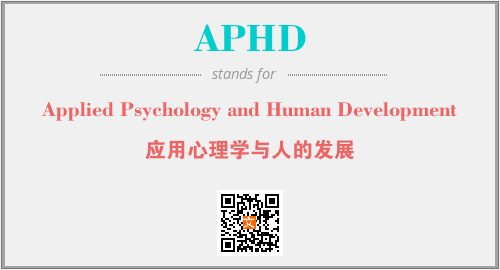 上述内容是“Applied Psychology and Human Development”作为“APHD”的缩写,解释为“应用心理学与人的发展”时的信息,以及英文缩略词APHD所代表的英文单词,其对应的中文拼音、详细解释以及在英文中的流行度和相关分类、应用领域及应用示例等。