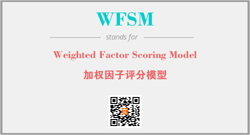上述内容是“Weighted Factor Scoring Model”作为“WFSM”的缩写,解释为“加权因子评分模型”时的信息,以及英文缩略词WFSM所代表的英文单词,其对应的中文拼音、详细解释以及在英文中的流行度和相关分类、应用领域及应用示例等。