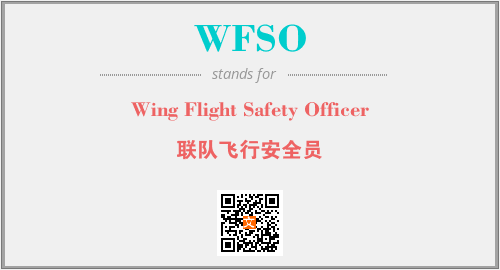 上述内容是“Wing Flight Safety Officer”作为“WFSO”的缩写,解释为“联队飞行安全员”时的信息,以及英文缩略词WFSO所代表的英文单词,其对应的中文拼音、详细解释以及在英文中的流行度和相关分类、应用领域及应用示例等。