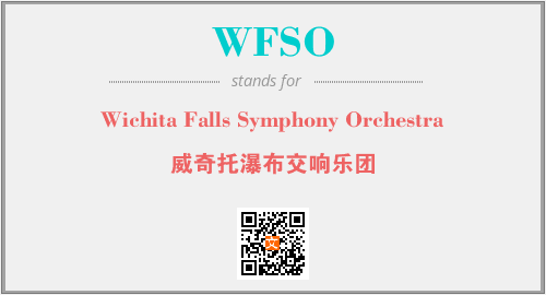 上述内容是“Wichita Falls Symphony Orchestra”作为“WFSO”的缩写,解释为“威奇托瀑布交响乐团”时的信息,以及英文缩略词WFSO所代表的英文单词,其对应的中文拼音、详细解释以及在英文中的流行度和相关分类、应用领域及应用示例等。