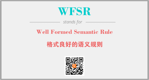 上述内容是“Well Formed Semantic Rule”作为“WFSR”的缩写,解释为“格式良好的语义规则”时的信息,以及英文缩略词WFSR所代表的英文单词,其对应的中文拼音、详细解释以及在英文中的流行度和相关分类、应用领域及应用示例等。