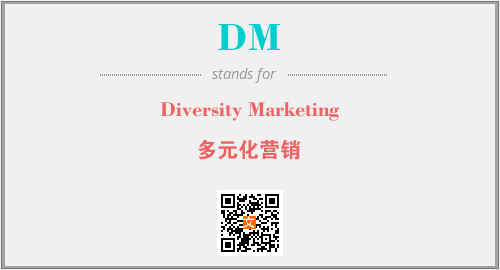 英文缩略词“DM”经常作为“Diversity Marketing”的英文缩写来使用,中文表示:“多元化营销”。本文将详细介绍英文缩写词DM所代表英文单词,其对应的中文拼音、详细解释以及在英语中的流行度。此外,还有关于缩略词DM的分类、应用领域及相关应用示例等。