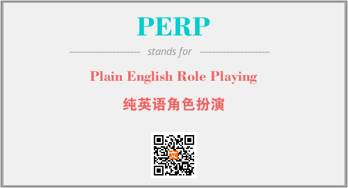 以上为Plain English Role Playing英文缩略词PERP的中文解释,以及该英文缩写在英语的流行度、分类和应用领域方面的信息。