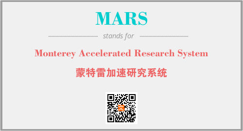 上述内容是“Monterey Accelerated Research System”作为“MARS”的缩写,解释为“蒙特雷加速研究系统”时的信息,以及英文缩略词MARS所代表的英文单词,其对应的中文拼音、详细解释以及在英文中的流行度和相关分类、应用领域及应用示例等。