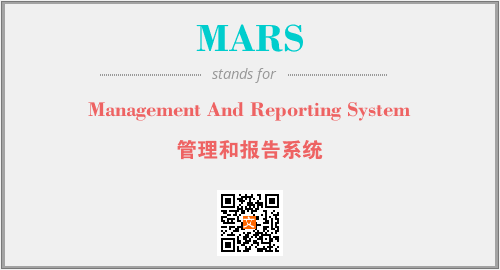 英文缩略词“MARS”经常作为“Management And Reporting System”的英文缩写来使用,中文表示:“管理和报告系统”。本文将详细介绍英文缩写词MARS所代表英文单词,其对应的中文拼音、详细解释以及在英语中的流行度。此外,还有关于缩略词MARS的分类、应用领域及相关应用示例等。