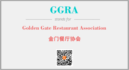 英文缩略词“GGRA”经常作为“Golden Gate Restaurant Association”的英文缩写来使用,中文表示:“金门餐厅协会”。本文将详细介绍英文缩写词GGRA所代表英文单词,其对应的中文拼音、详细解释以及在英语中的流行度。此外,还有关于缩略词GGRA的分类、应用领域及相关应用示例等。
