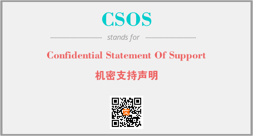 英文缩略词“CSOS”经常作为“Confidential Statement Of Support”的英文缩写来使用,中文表示:“机密支持声明”。本文将详细介绍英文缩写词CSOS所代表英文单词,其对应的中文拼音、详细解释以及在英语中的流行度。此外,还有关于缩略词CSOS的分类、应用领域及相关应用示例等。