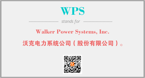上述内容是“Walker Power Systems, Inc.”作为“WPS”的缩写,解释为“沃克电力系统公司(股份有限公司)。”时的信息,以及英文缩略词WPS所代表的英文单词,其对应的中文拼音、详细解释以及在英文中的流行度和相关分类、应用领域及应用示例等。