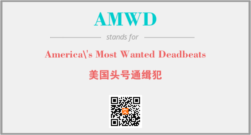 上述内容是“America\'s Most Wanted Deadbeats”作为“AMWD”的缩写,解释为“美国头号通缉犯”时的信息,以及英文缩略词AMWD所代表的英文单词,其对应的中文拼音、详细解释以及在英文中的流行度和相关分类、应用领域及应用示例等。